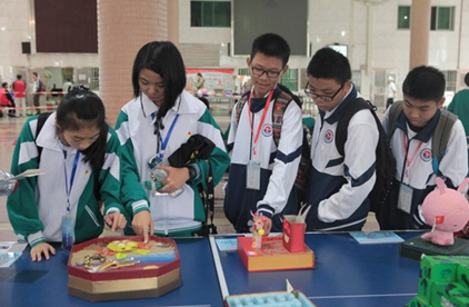 该赛事是2015年全国青少年科学调查体验活动的广东特色活动。调查体验活动始于2006年,由中国科协、教育部等单位共同主办,每年暑假举行,青少年学生围绕不同主题开展科学调查、科学体验和科学探究活动,提交调查报告,提出合理化建议。今年主题为“变废为宝,从我做起”。为了丰富活动的内容,增强师生传统文化意识,省科协、省教育厅等单位结合活动主题和适逢中秋佳节的实际,增设了“创客在行动”——月饼宝盒变形PK赛,鼓励全省青少年学生利用废旧月饼盒等材料制作生活工艺品或创意作品。