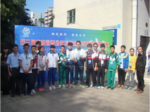 代表茂名市参加第三届广东省青少年科技创新实践能力挑战赛的部分师生合影留念
