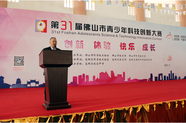 省科协吴焕泉副主席在闭幕式上作了讲话。他在讲话中指出,佛山市在开展青少年科技创新活动方面一直走在全省的前列,取得了省赛总成绩连续3届位列全省之首的优异成绩,学生参与覆盖面广,在组织方式上不断改进创新,成为全省青少年科技创新活动的楷模。他希望佛山市再接再厉,再创新的辉煌。