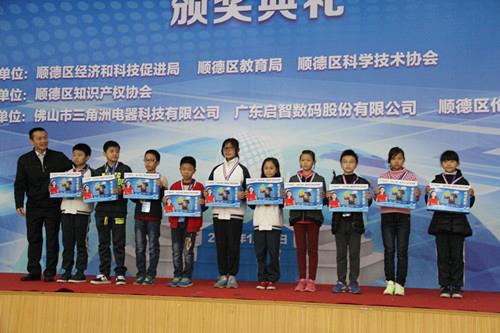 在前三届大赛成功举办的基础上,自今年4月份活动启动以来,大赛吸引了全区122所中小学的近万名师生参加活动,征集选出743件作品。经过评委初评、大赛展评、答辩等环节的层层筛选,本届大赛共评选出一等奖91项、二等奖200项、三等奖253项。其中,大赛从一等奖中挑选出《力争向上的小水滴》、《便携式太阳黑子记录仪》等最好的8项创新成果作品和2项科技实践活动,推荐参加省级赛事,并获得启智数码专项奖。另有271项获奖作品,也获得启智数码公司提供的奖品奖励。评委们还在学生创新成果一等奖中挑选出20名,授予三角洲杯专项奖。另有12项发明获实用新型专利证书奖,2项发明获专利申请奖。北滘、乐从、伦教、大良4个镇街教育局获得特别组织奖。