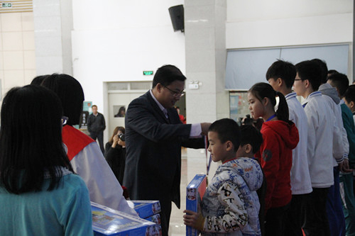 佛山市顺德区科协主席谭素为获奖学生颁奖