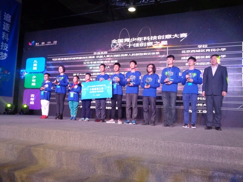 12月12日至13日,2015年全国青少年科技创意大赛颁奖典礼暨作品成果展示在中国科技馆举行。佛山市同济小学蒋丰泽同学的《多功能机器人》获儿童组一等奖,并夺得全场大奖——“十佳创意之星”殊荣。