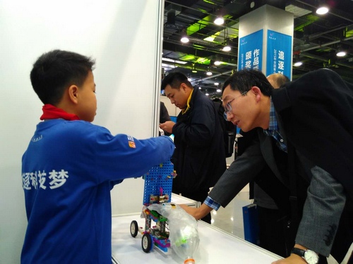 全国240件获奖作品百余位参赛选手齐聚北京,在中国科学技术馆参加作品成果展示活动。我省共获一等奖4项,二等奖8项,三等奖13项的好成绩,其中广东实验中学附属天河学校彭嘉楠同学、广州增城市第一中学谢扬辉同学和汕头东方小学李楠老师分获少年组和青年组一等奖。