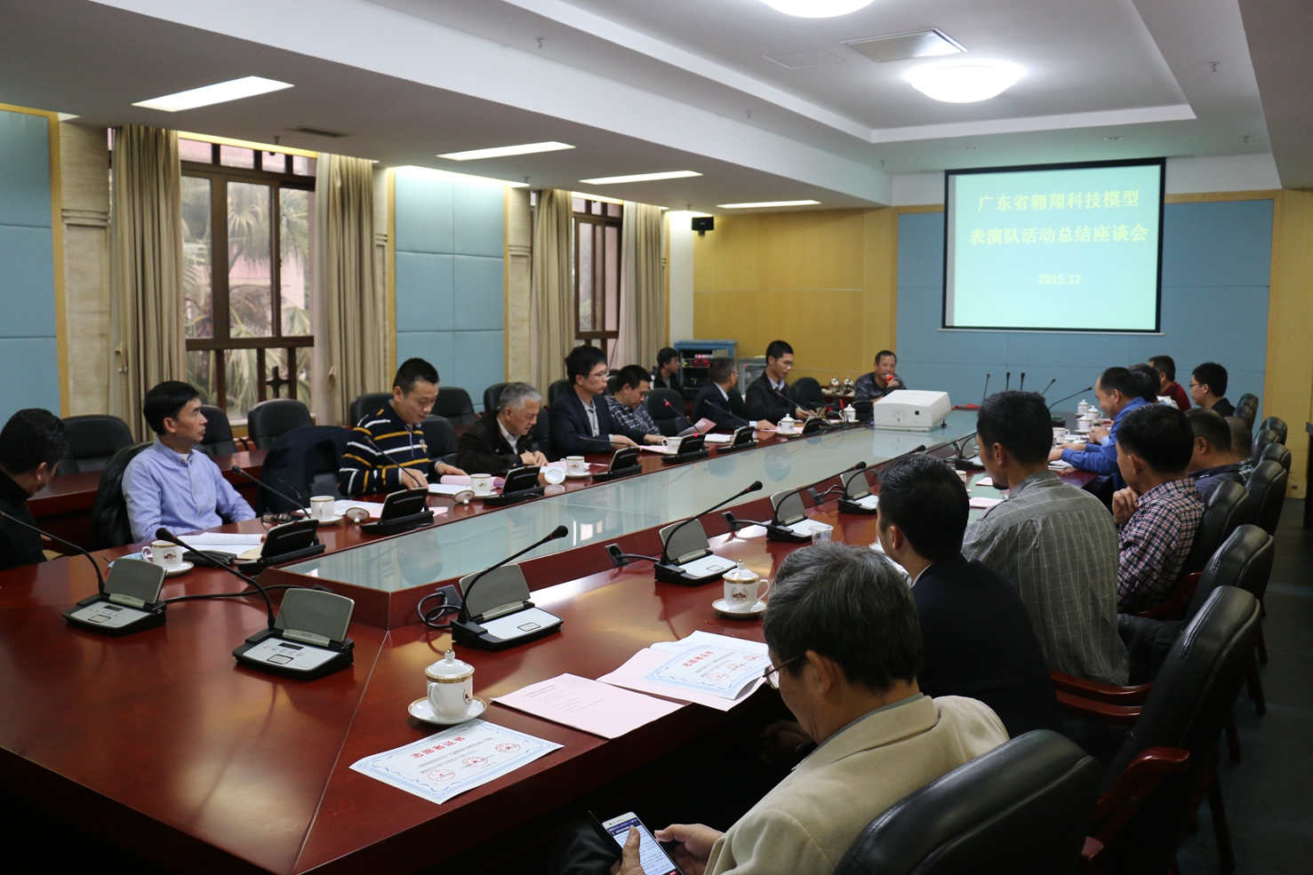2015年12月23日,模型表演队活动总结座谈会在广东科学馆举行,省科协党组成员、副主席吴焕泉;广东科学馆馆长何少强;省青少年科技教育协会秘书长叶新鹏;模型表演队队长王超荣等领导嘉宾,以及表演队成员出席会议。与会者一起回看了表演队两年活动的精彩画面,总结活动情况,交流活动心得,颁发志愿者和教练证书。
