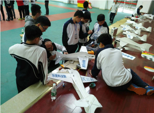 首先,东莞市科技博物馆的老师们对飞机进行了简单的操作,结合讲解,让学生们对航模飞机有了初步的认知,熟悉了飞机各个部件与各个舵面之间的关系。对飞机有了初步的认知后,在老师的指导下,同学们初步尝试在电脑上模拟遥控飞机,进一步熟悉遥控器各个按键的功能,如何更好的控制飞机的飞行姿态。通过模拟飞行,部分同学已经掌握了如何通过掰动遥控杆,控制飞机在空中的姿态。最后,老师们还教学生学习组装飞机——黏机身、安装无刷电机、安装舵机、如何调整舵面、连接各个舵面和调试遥控器等等。在拼装的过程中,同学们之间的相互协助,各个难题都得以解决。最后,一架架意义非凡的航模飞机就在同学们的手中诞生了。
