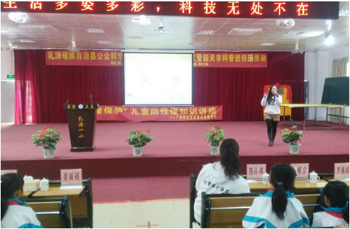 随后,科普进校园活动全面铺开。活动包括科普图片展、益智玩具体验、《灾难警示录》3D电影、机器人表演等节目,寓教于乐的活动项目受到了学生们的极大喜爱,现场气氛热烈,同学们参与热情高涨。此次科技馆进校园活动首次加入了“关爱女童”儿童防性侵知识公益讲座内容,由“关爱女童”基金会粤北站团队负责宣讲,主要向同学们宣讲怎样分辨和防范性侵害,遇到性侵害后怎么做等,得到学生的热烈回应,讲座取得了较好的效果。通过志愿者的传授,提高了同学们自我保护意识,增强了儿童防性侵意识,受到了广大师生的好评。
