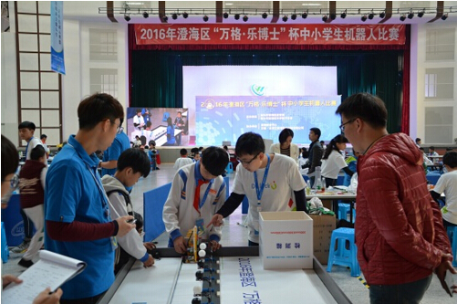 3月27日,由汕头市澄海区教育局、区科协联合主办,澄海职教中心、万格•乐博士教育装备科技有限公司承办的2016年澄海区“万格·乐博士”杯中小学生机器人竞赛在澄海职业技术学校举行。