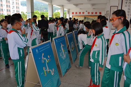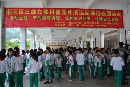 近期,汕头市潮阳区科协联合区环保局、文光街道办事处,以“节约能源资源,保护生态环境,保障安全健康”为主题,举办三维立体科普图片巡回展进校园活动,活动以保护水资源、保护母亲河“练江”为内容,倡导绿色文明意识,传播生态文化,促进生态环境建设,引导广大青少年学生积极参与到保护环境、保护水资源、保护母亲河的行动中来。本次巡回展将在文光街道镇二小学、平和东学校、镇六小学分别展出一周。