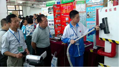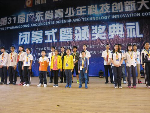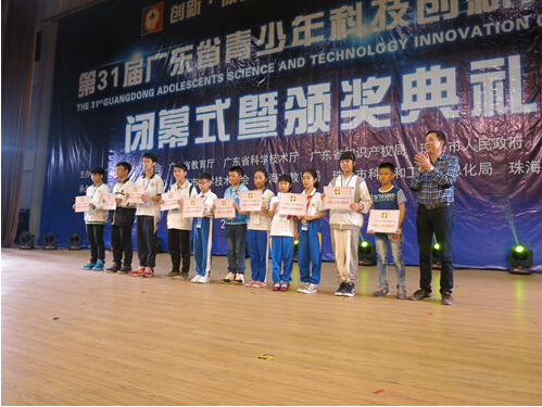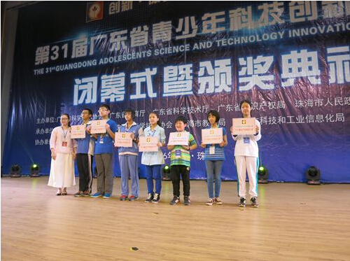 大赛中,惠阳区在青少年科技创新成果竞赛项目的成绩尤为突出,5个参赛项目中获得了一等奖2个、二等奖3个和专项奖5项。其中,实验小学刘子睿同学的《智能污水偷排监控器》和淡水第八小学卞晨晓同学的《自行车新型锁撑》荣获一等奖,惠阳高级中学初中部杨剑同学的《一种新型吸尘式打磨机》、沙田中学黄欣同学的《村道拐弯处交通安全可视智能提醒装置》和华南师范大学附属惠阳学校吴雨乐、杨心宸同学的《智能拐杖》荣获二等奖。同时,《智能拐杖》项目荣获大赛组委会设立的“乐博士青少年创客奖”;《智能污水偷排监控器》更是勇夺“青少年科学基金会专项奖”、“‘中大视光’护眼创新奖”和“华南师范大学附属中学科技创新奖”等3个专项奖。此外,光耀实验学校王漪薇同学的《海底家园》、华南师范大学附属惠阳学校王思佳同学的《清洁者》和实验小学彭泓玮同学的《产机器人登录冥王星》荣获科幻绘画二等奖;崇雅中学红树林生态调查小组的《碧水共蓝天一色 红树与白鹭齐飞》荣获实践项目三等奖;实验小学钟金城老师的《便携式电热快干水写布》荣获科技辅导员创新成果项目三等奖。