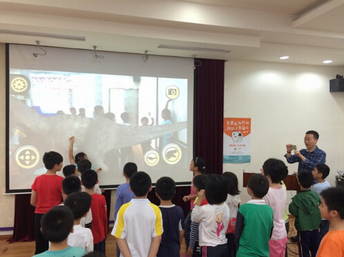 为了进一步启发思维,韩老师让学生们思考三个问题:你亲手做过这些实验吗?你会再次做这些实验吗?你尝试过改变玩法吗?其实探索身边的科学,就是一个发现问题、分析问题、解决问题的过程,在这个过程中可以寻求帮助、借助工具、使用技术。至于怎么与恐龙合影?在最后互动环节,韩老师启发学生们使用手机APP软件来实现,学生们争先恐后做起了“与恐龙一起玩耍”的游戏,在趣味的互动游戏中,纷纷惊叹科技之神奇。