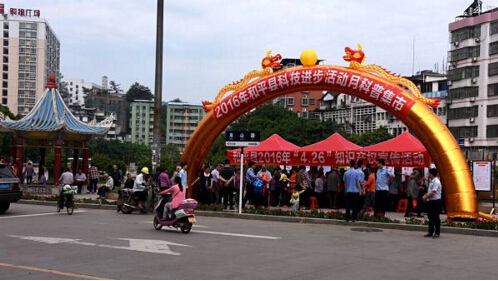 4月26日,河源市和平县科协组织科技局、农业局、知识产权局、市场监管局、卫计局、城管局、地震局等单位在县城六角亭举办2016年和平县科技进步活动月科普集市活动。活动以科技咨询、发放科普宣传资料、科普知识展示形式进行。活动现场,各部门科技工作者围绕惠农政策、种养技术、知识产权、防灾减灾、卫生保健、权益维护等内容接受市民咨询,科普志愿者现场发放科普宣传资料环保袋15000多份。