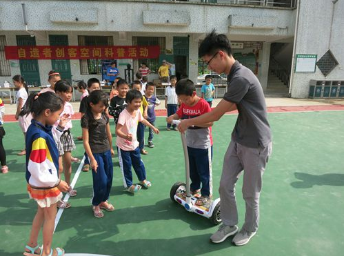 当天下午,区科协又与自造者创客空间团队一起到驻点村的沙田镇鹤山小学开展创客教育科普活动。自造者创客空间团队向孩子们展示了3D打印机、自编程控机械车、无人机、空气炮、卡片手作机、平衡车等科技作品,并分别介绍了这些科技作品的工作原理及创客、创客空间的科学含义,让农村的师生们增长知识、开阔眼界,真切感受科技的神奇与奥秘,亲身体验科学带来的无限快乐。