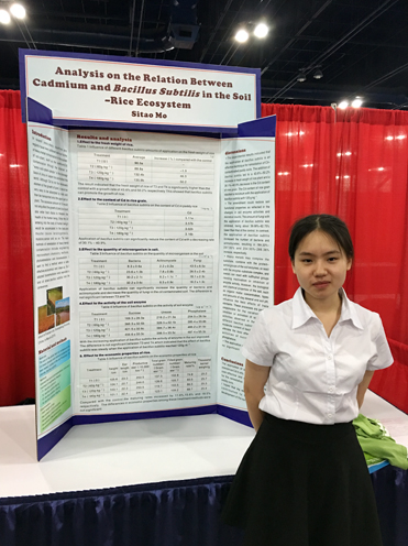 美国休斯顿当地时间2016年5月1日下午,2016年I-SWEEEP国际可持续发展项目奥林匹克竞赛在美国第四大城市休斯敦圆满落幕。佛山市南海区狮山石门高级中学高二级莫斯涛同学的创新作品《土壤—水稻生态系统中镉污染与枯草芽孢杆菌关系分析》在闫灵麟老师的指导下,经中国科协、教育部、共青团中央推选,代表中国参加第九届国际可持续发展项目奥林匹克竞赛(I-SWEEEP),获大赛环境污染与治理类最佳荣誉奖(大赛最高荣誉),并获得奖金以及莱斯大学、得州农工大学等大学的邀请。成为佛山首个获此殊荣的学子,同时也实现广东在该项目参赛的零突破。
