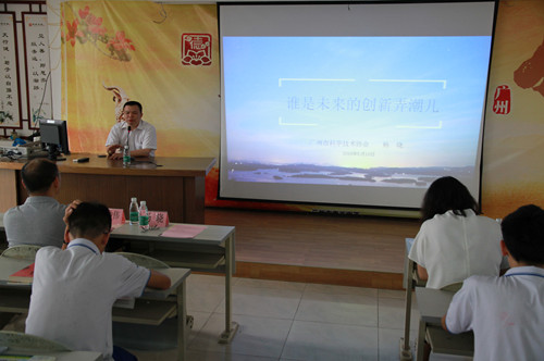 杨晓首先介绍了本次讲座的主题为“谁是未来的创新弄潮儿”,强调我们的日常生活离不开创新,并提出“谁是未来的创新弄潮儿”的问题。紧接着,开展了“科技人物抢猜”互动环节,学生们基于日常对科学技术知识的关注、了解,在互动中思维敏捷,成功猜对所有题目。竞猜游戏结束,杨晓继续介绍了他在以色列的所见所闻,并对以色列青少年的创新培养提出总结——以色列的弄潮儿到弱势群体中找需求、将想法变成一个具体的东西等事例,启发同学们对创新有了更深入的认识,对创新途径有更深入的了解。在活动最后,梁仲伟及彭爱玲分别介绍了广州市和荔湾区开展“千师万苗工程”的工作情况,并邀请同学们加入到“千师万苗工程”的创新科研团队中。