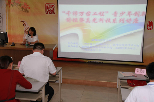 5月10日,由广州市青少年科技中心、荔湾区科协主办,荔湾区詹天佑少年科学院、荔湾区青少年宫、广州市真光中学承办的“‘千师万苗工程’青少年创新讲坛暨真光科技系列讲座”在真光中学举行。本次讲座邀请了广州市科学技术协会副主席杨晓作演讲;广州市青少年科技中心副主任梁仲伟、谢妙慧、荔湾区科协主席彭爱玲、区青少年宫、真光中学师生共一百多人参加了讲座。