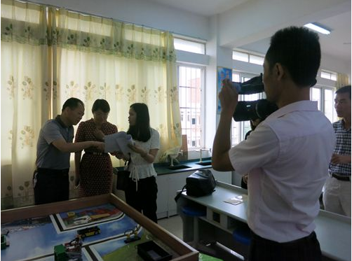 5月17日上午,惠州市惠阳区科协主席林庆财带领有关人员到惠阳实验学校看望慰问刚刚参加完第16届广东省青少年机器人竞赛的参赛选手和指导老师,向他们道贺的同时,对该校锐智队备战全国竞赛的情况进行了指导。
