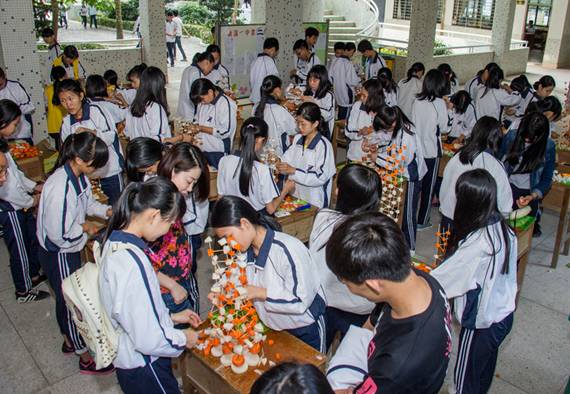 新溪一中学生通过废物利用,制作出功能多样、精致有趣的“金苹果”