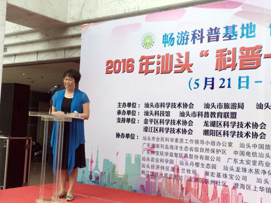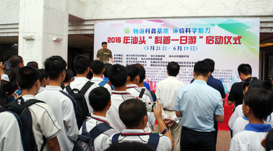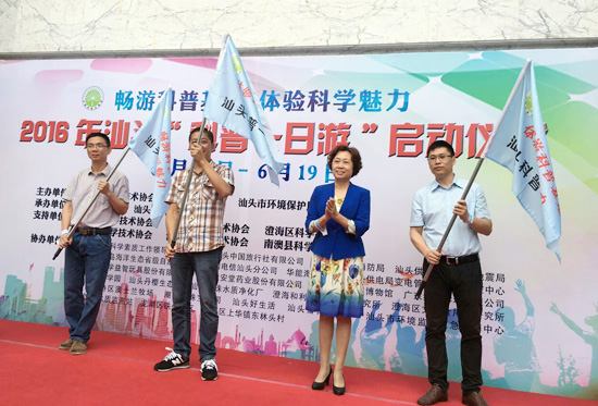 5月21日上午,由汕头市科学技术协会、汕头市旅游局和汕头市环境保护局联合主办的2016年“科普一日游”活动启动仪式在科技馆举行,汕头市委常委马逸丽,汕头市科协党组书记、主席洪建芬,汕头市旅游局陈耿楠副局长、市环境保护局王建平副局长、市地震局吴华强纪检组长、市科协刘瑞明纪检组长等单位领导出席了启动仪式。