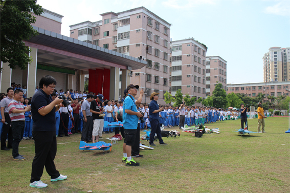 梅县区青少年创客基地航模表演队首次参加科普进校园活动。航拍飞机、水星KT飞机、花样飞行航模飞机的精彩表演,赢得同学们的欢呼和掌声。