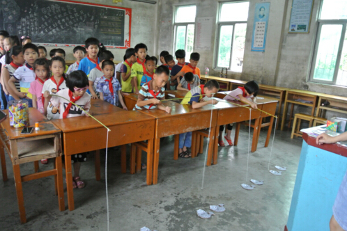 在第二个部分,校方为学生们准备了四个小游戏,分别是夹玻璃珠、吹乒乓球、钓鱼和扔圈圈。