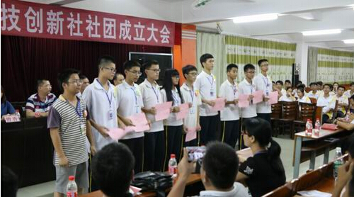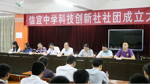 成立大会上,潘强副校长宣读了信宜中学科技创新教育工作领导小组名单。杨雄股长为科创社提出创办意见。首任社长邓志锋同学作了就职演说。科技创新工作领导小组常务负责人、政教处副主任陈立福列举了大量鲜活的调查实践课题鼓励学生积极开展科技创新活动。