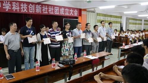 最后,周祖其向信宜中学科创社的成立表示了热烈的祝贺,也给在场的“创客”们寄语了五点希望:一是希望平台能真正成为同学们接触科学、学习科学、开展科学创新实践的平台;二是希望进入创新社的同学,既要刻苦耐劳,勇于探索,充分发挥自身能力,积极发扬团结协作精神,将平台办好,让平台发挥应有的作用;三是希望同学们在认真学好课标教材内容的同时,珍惜好创新社这个平台,积极参与、大胆参与到平台中去体验、去学习、去好挥;四是希望创新社管理人员,严格按照社会组织管理有关规范运行、管理好这个平台;五是希望信宜中学能够在运营好创新社这个平台的同时,积极总结经验,创办更多顺应时代要求的素质教育平台,以满足青少年教育需要。