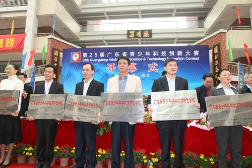 在大赛的开幕式上,还为广东省第一批获得“青少年科学教育特色学校”的学校举行了授牌仪式。科学教育特色学校是由广东省科协、省科技厅、省教育厅联合组织实施的,计划在未来几年内创建100所高标准、有特色和有示范带动作用的省级科学教育特色学校,将制定创建工作办法,统一建设标准,规范评审程序,建立激励机制。