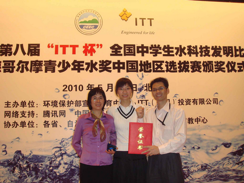 5月15日,“第八届ITT杯全国中学生水科技发明比赛暨斯德哥尔摩青少年水奖中国地区选拔赛”总决赛在北京降下帷幕。广东省佛山二中“绿色假日”小组的李颖欣、陈婉玲、杨兆楠同学凭借《“释能保氮土壤重塑”抗污染新技术的研究与应用》科技项目,一举夺取本届比赛的全国总冠军(全国唯一的特等奖),并将作为中国唯一的代表,于2010年8月赴瑞典参加“斯德哥尔摩国际青少年水科技发明比赛”总决赛。