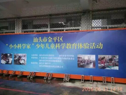 由汕头市金平区科协和汕头市金平区教育局联合主办,汕头市青少年科技创新促进会承办,汕头市飞厦中学及汕头市快畅机器人科技有限公司协办的“小小科学家”少年儿童科学教育体验活动,于2016年6月11日下午在汕头市飞厦中学举行。