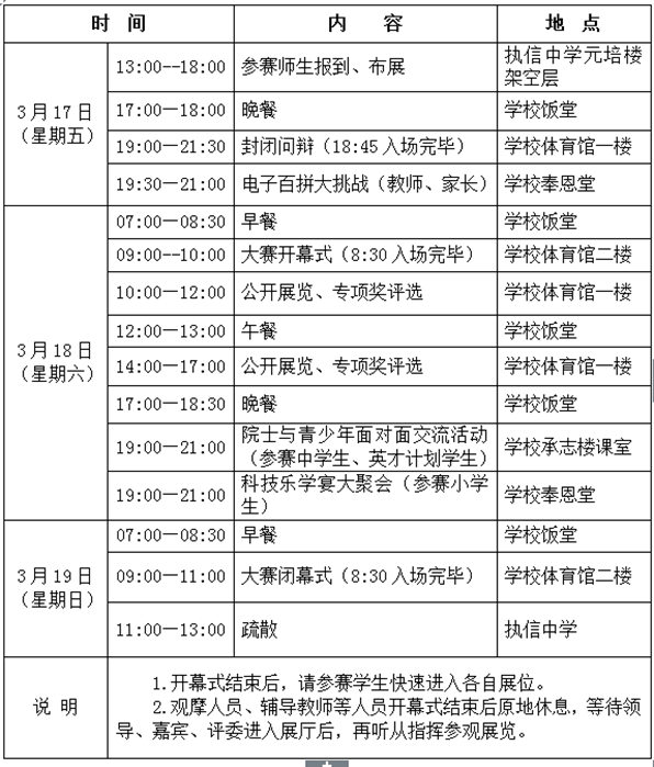 第32届广东省青少年科技创新大赛定于2017年3月17-19日在广州市执信中学举行,现将大赛奖项设置和日程安排等有关事项通告如下: