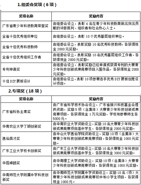 第32届广东省青少年科技创新大赛奖项设置和日程安排的通告