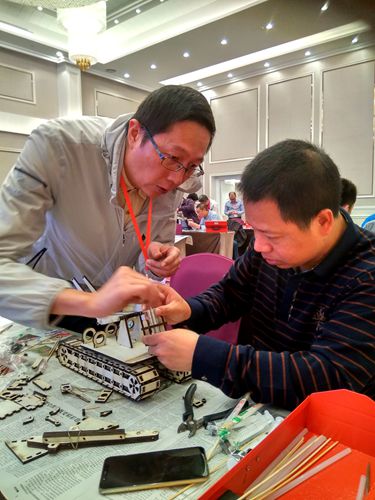 培训班邀请相关机器人公司通过讲座、器材体验和经验交流等方式学习熟悉规则,并举办了一场别开生面的科技实践体验活动,分组完成气压挖掘机的搭建和PK赛。