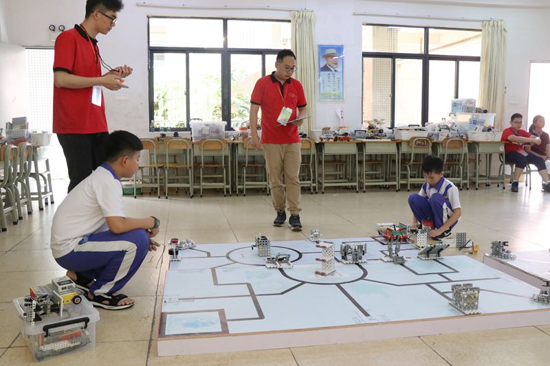今年比赛规模再创历史新高,参赛队伍比往年多74支,参赛师生比往年多500多人,赛场内外热闹非凡,精彩纷呈。现场拼装赛是本次比赛的自选项目,赛事打破传统模式,创意和规则均由基层一线科技教师和组织者自定竞赛规则,不限厂家器材,大幅降低技术门槛,注重考察学生搭建编程能力。自2017年首次亮相以来,就受到全省特别是粤东西北边远地区青少年的热捧,成为省赛一大亮点。