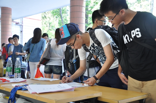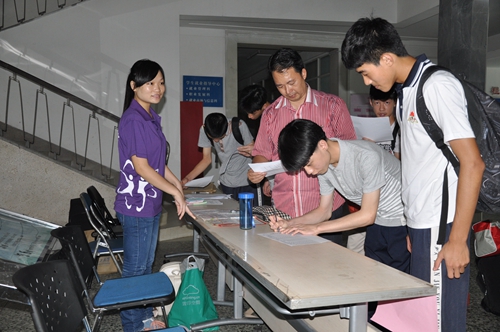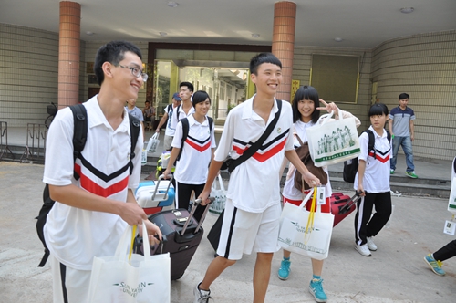 高校科学营广东营设中山大学分营(下称中大分营)、华南理工大学分营(下称华工分营)。14日的羊城,蓝天白云,艳阳高照,晴热的天气丝毫没有阻挡住从各省区远赴参营营员的热情。在华工分营,参加该校化学营的来自广东省汕尾市陆丰龙山中学的共十名营员在该校带队老师胡新强的率领下,于中午十二时许顺利抵达华工分营,师生一行在华工分营志愿者热情引导下先后办妥报到手续,领取营员手册、饭票、营服等物资,用午餐,并入住宿舍,从报到到入住,一路顺畅。