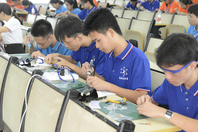 动手实验,感受科学乐趣。在这七天里,营员们通过学习结构设计制作力学架构模型,用单薄纸张制作坚实结构,感受力学魅力;营员们还通过学习制作集成电路板进行机器人设计与开发,在实践中验证理论知识,增强了动手实践能力。