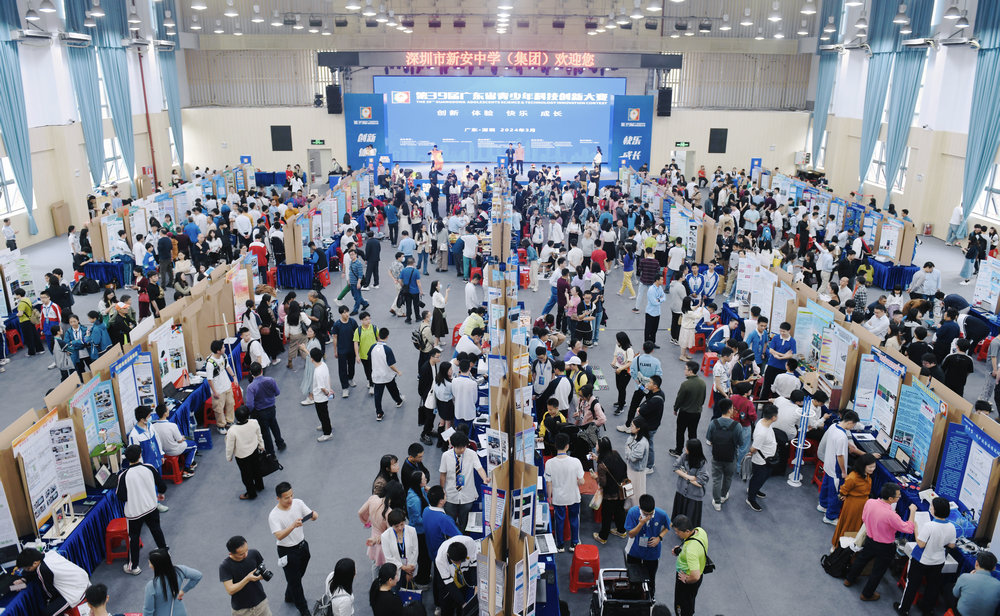 3月21-24日,由省科协、省教育厅、省科技厅、省市场监管局、团省委和深圳市宝安区政府联合主办的第39届广东省青少年科技创新大赛在新安中学(集团)高中部成功举办,大赛吸引了科教工作者、师生家长及社会人士近2万人前来观摩。